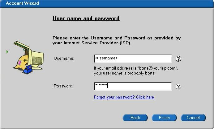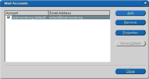 At this point you should be able to click on finish. Now click on properties for the account you just created.