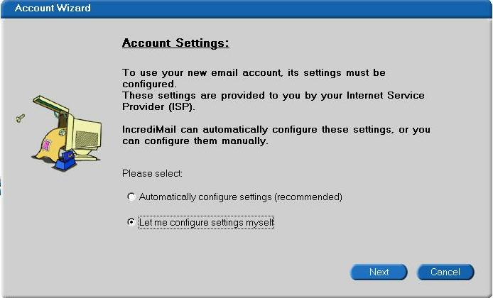 Make sure the dot is in allow me to configure settings myself and click on next.