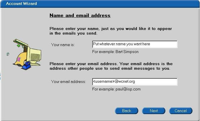Be sure to replace with your assigned WCNet username in all small letters (no capitals). Click next.