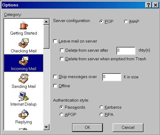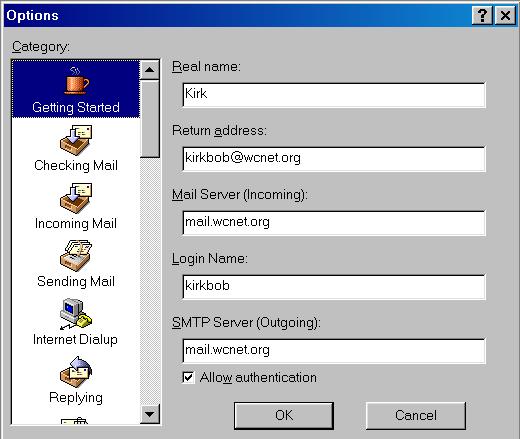 Things Eudora wants to know: (Most of these instructions will work regardless of which version of Eudora you are using. The latest version 4.x, has a number of new features that are not documented here [some are]. You can either download the Eudora manual or read the online help to learn more about these new features. How to use filters, for example, is really outside the scope of these pages. We are primarily concerned with getting you online so you can get your mail.)