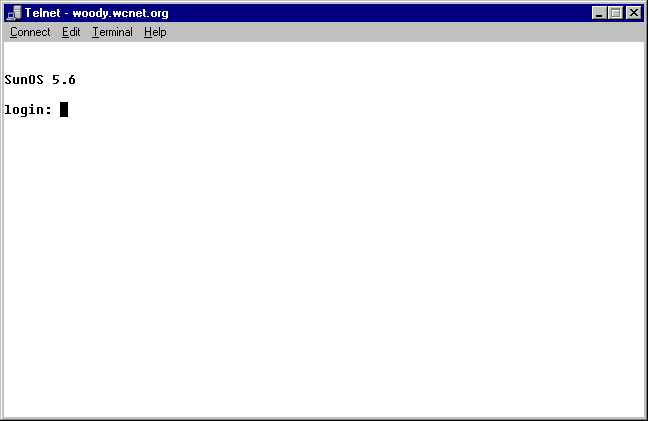 Making a Telnet connection to WCNet is very simple under any of the Microsoft Windows family of products as Microsoft has included a version of Telnet with all of it’s OS’s.