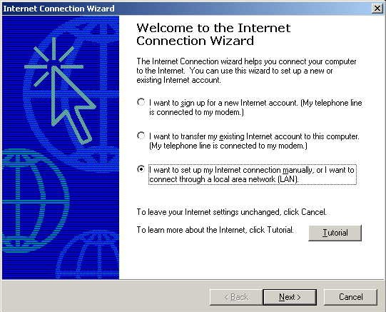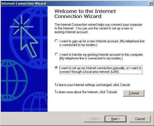 Pick "I want to set up my Internet connection manually, or I want to