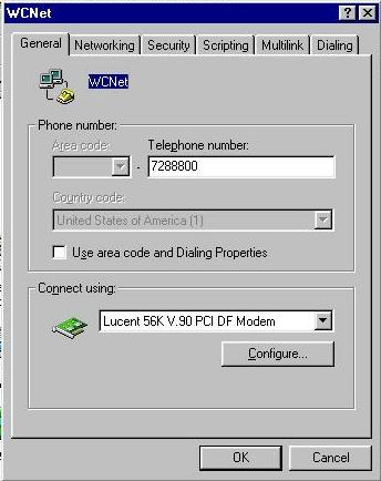 3. Type WCNet for name of computer you are dialing. Your modem should be listed in the box.