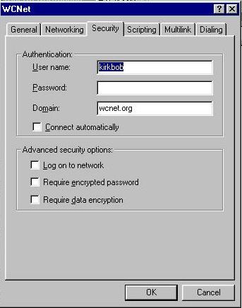 19. Click on Security tab, enter your user name and password, in all lower case letters.