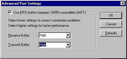 9. For error checking make sure that Compress data is checked. Hardware is checked in the next box. Click on Port Settings; change Transmit buffer from Max to High. ( Buffer Fix )