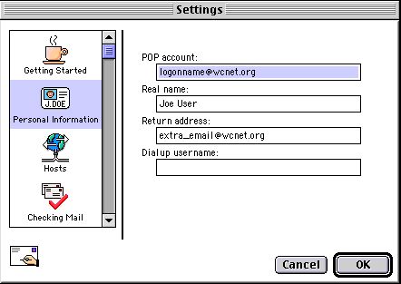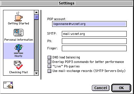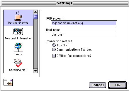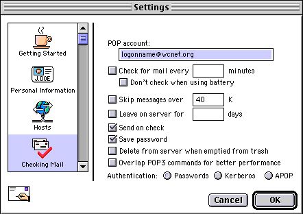 The POP (Post Office Protocol) account is your username or logonname followed by @wcnet.org