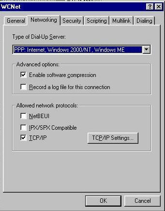 14. Click on the networking tab at the top of that window. Type of dial-up server should read PPP: Internet,Windows 2000 NT,Windows ME